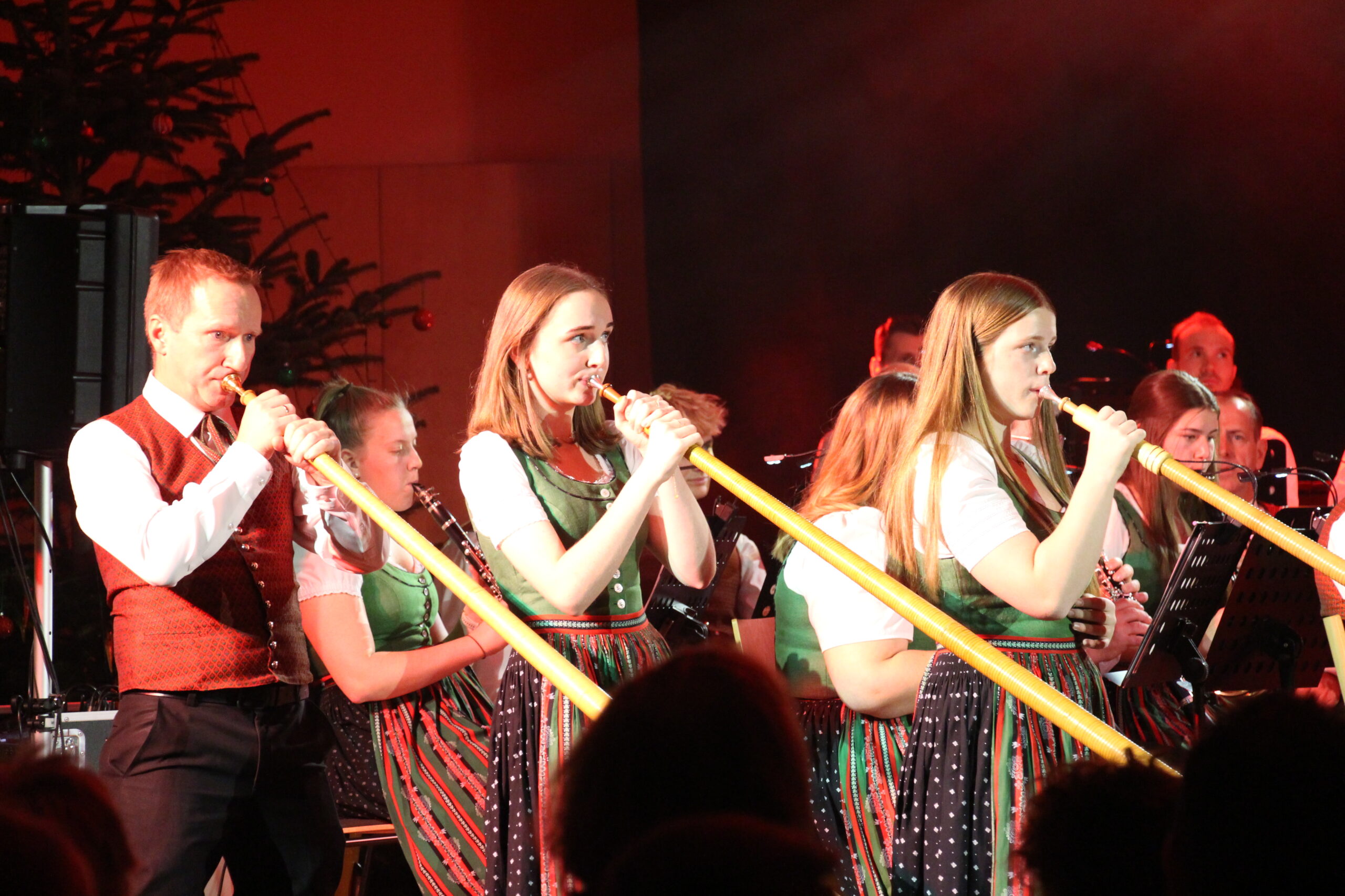 Für einen unvergesslichen Gänsehautmoment sorgte ein Stück mit drei Solist:innen am Alphorn: Marie, Verena und Erich Reisenhofer.